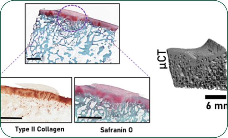 Restores hyaline-like cartilage and efficacy already demonstrated clinically relevant in large animal models. Our technology offers true regeneration of damaged tissues not just temporary repair